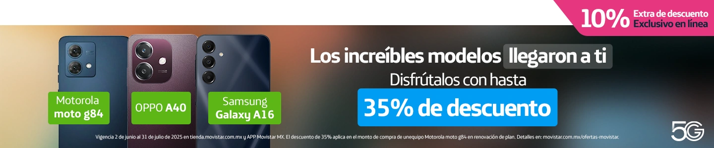 Válido en tienda en línea del 1 de agosto al 14 de septiembre de 2025. Detalles en movistar.com.mx/tyc/planes