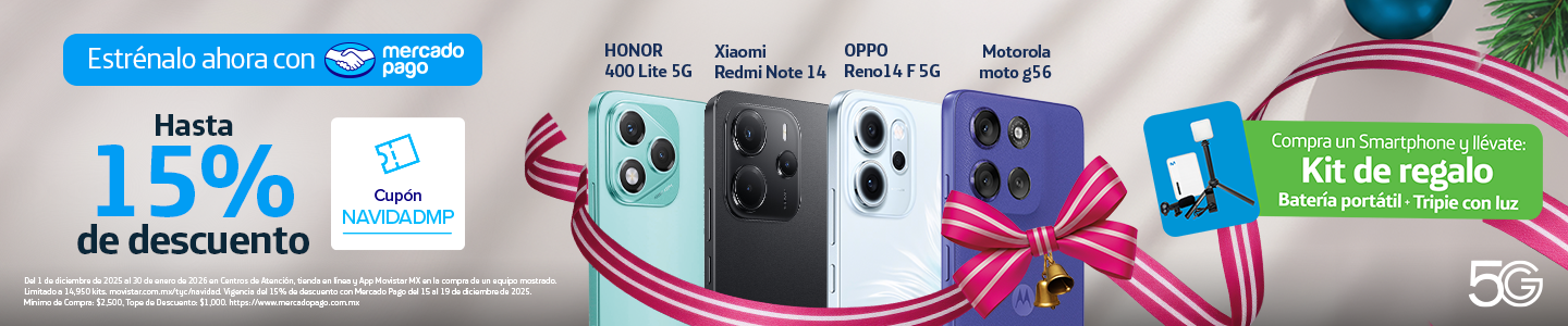 Válido en tienda en línea del 1 de agosto al 14 de septiembre de 2025. Detalles en movistar.com.mx/tyc/planes